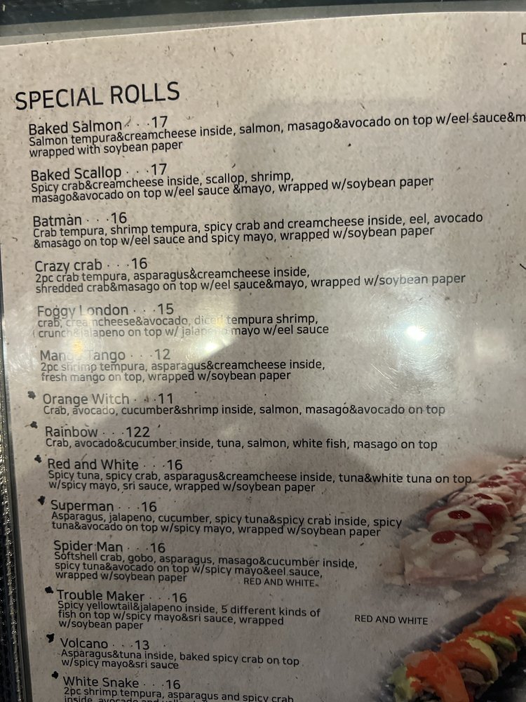 Baked. Sauce: eel sauce, Japanese mayo. Spicy crab and cream cheese inside, scallop, shrimp, masago and avocado on top wrapped with soybean paper.