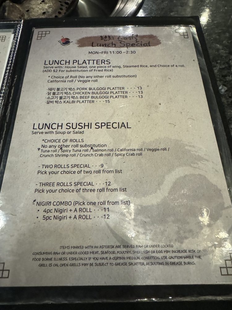Korea BBQ & Sushi Menu (Update 2025)